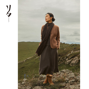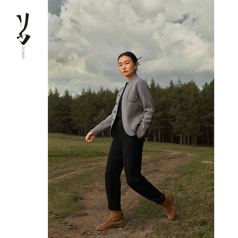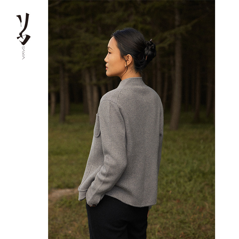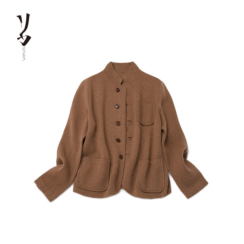 挺括 Say 暗纹提花立领系扣羊绒短西服 幻 垂坠