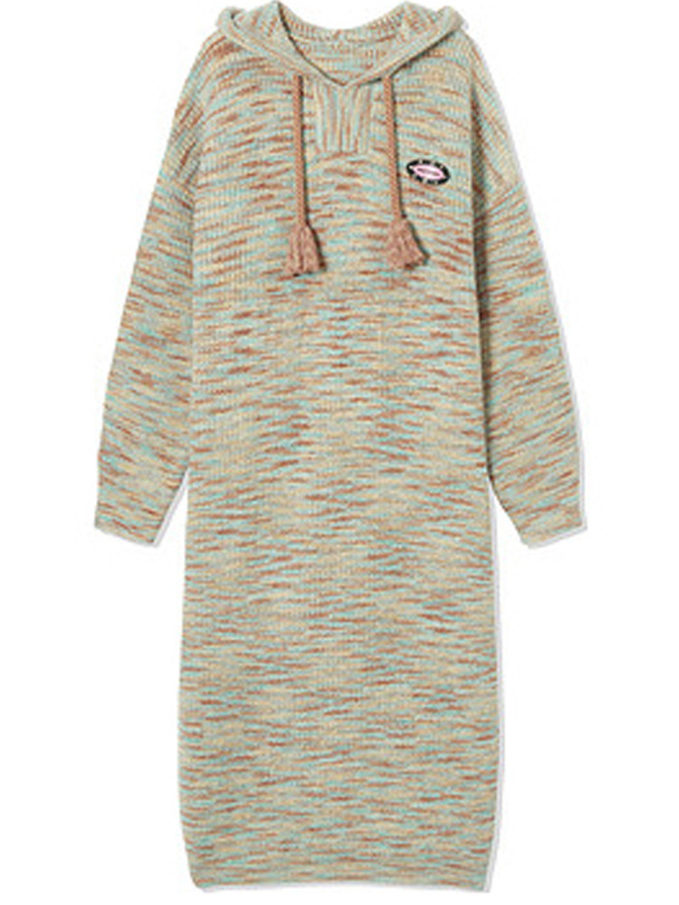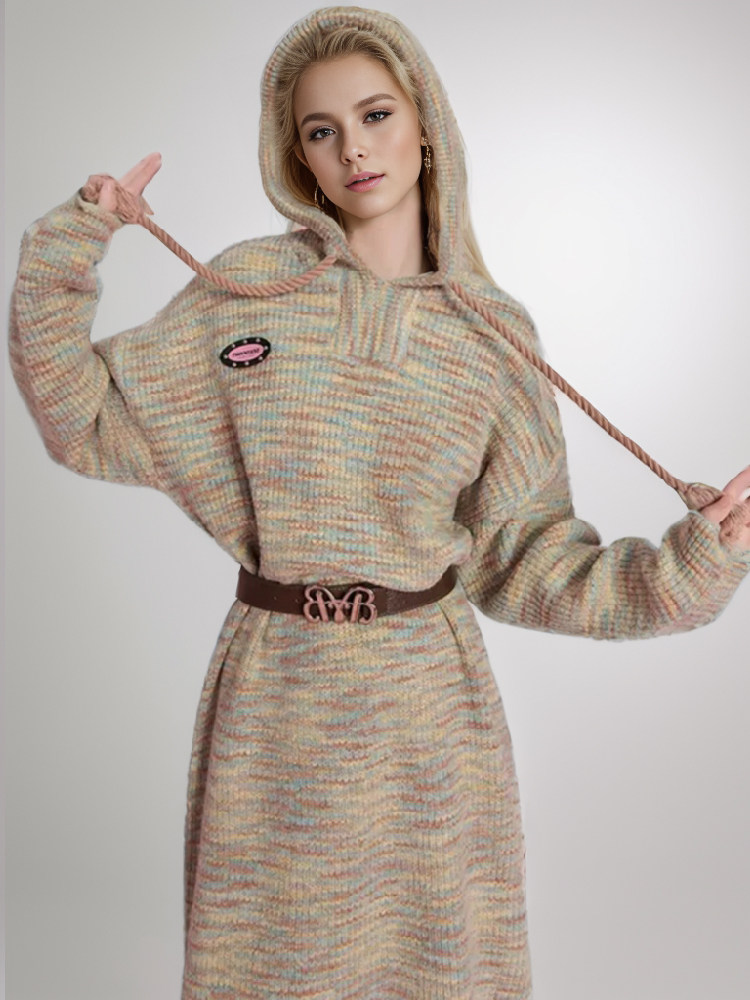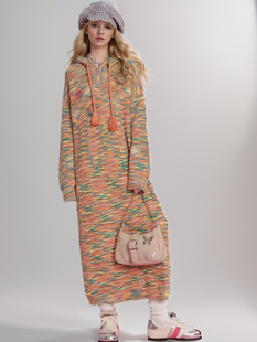 针织衫 妖精 慵懒风连帽中长款 新款 毛衣连衣裙子女2025年秋冬季