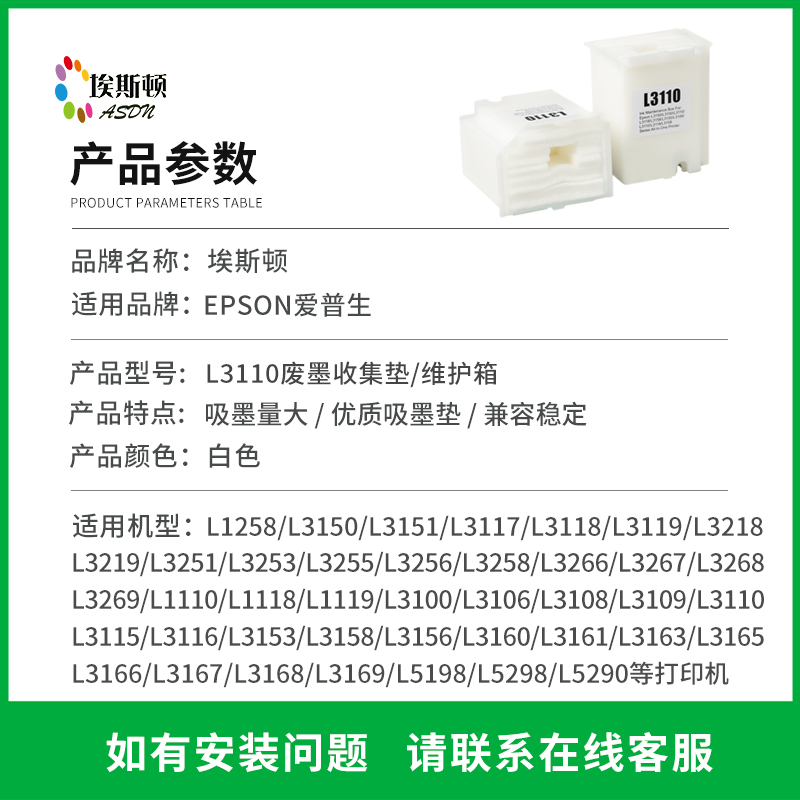 L3219打印机废墨收集垫维护箱清零废墨仓废墨盒收集瓶 L3218 埃斯顿适用epson爱普生L1258废墨垫L1259 L1218