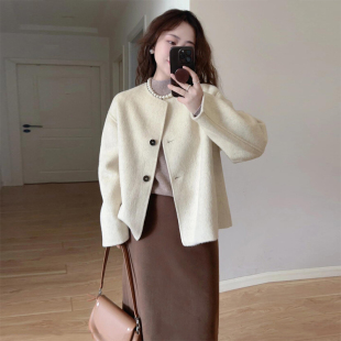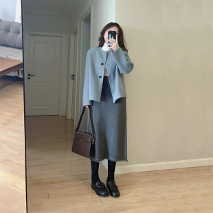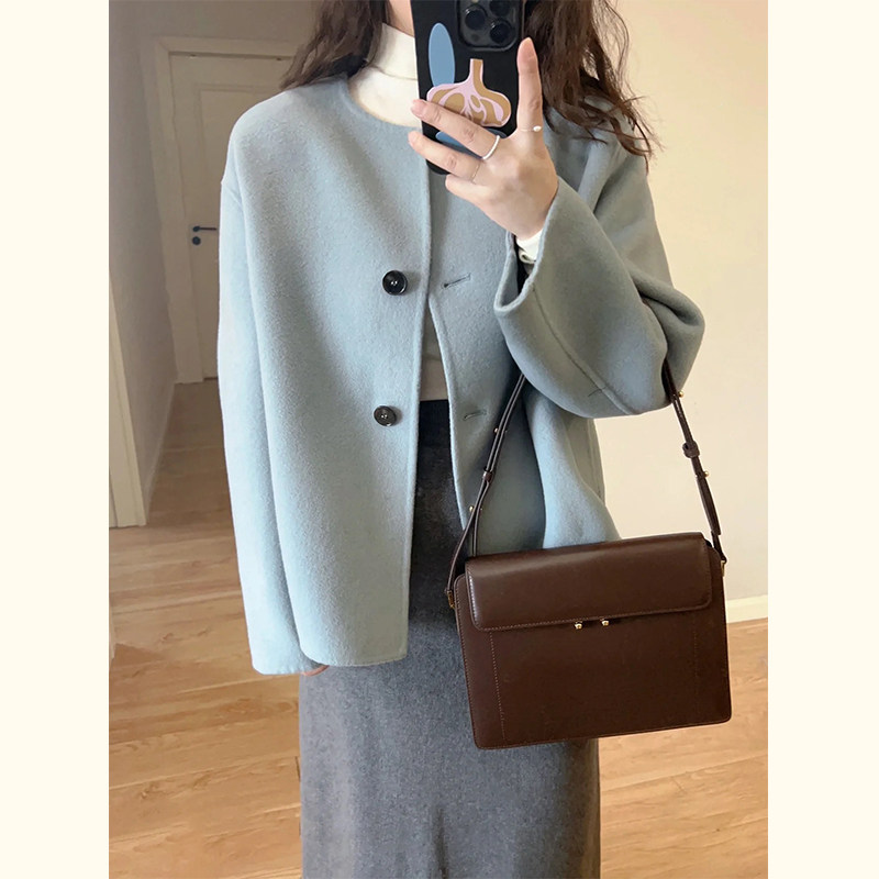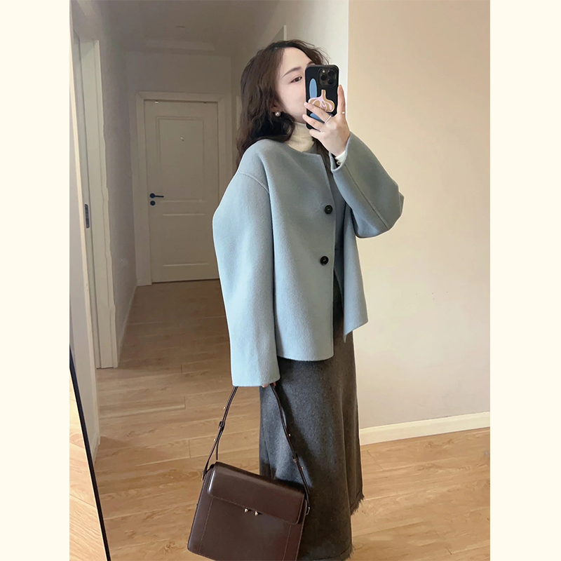 小个子休闲短款 韩版 毛呢外套 新款 高级感轻奢蓝色呢子大衣女秋冬装