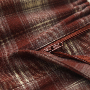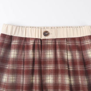 格纹宽松慵懒阔腿裤 wana 女新款 2025春季 try砖红色复古感保暖长裤