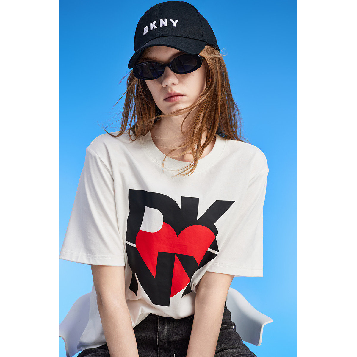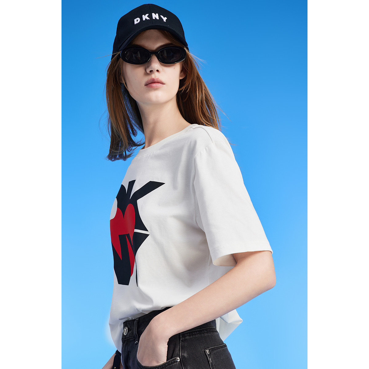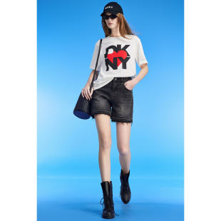 短袖 DKNY唐可娜儿夏季 T恤女字母印花圆领上衣宽松时尚 100%棉