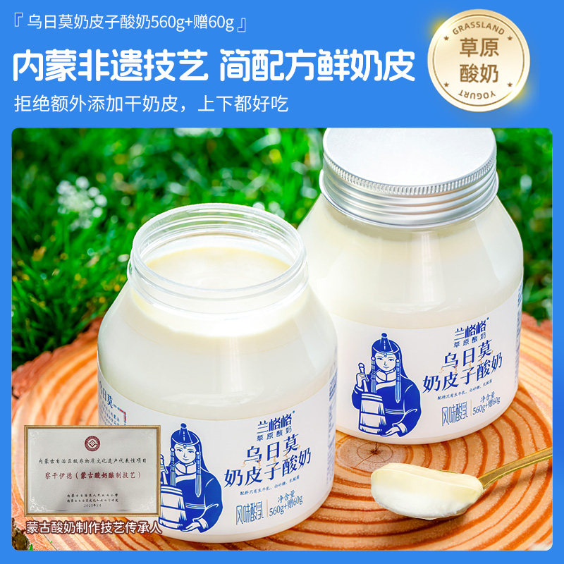 兰格格草原酸奶乌日莫奶皮子酸奶620g 2瓶生鲜低温酸牛奶