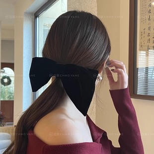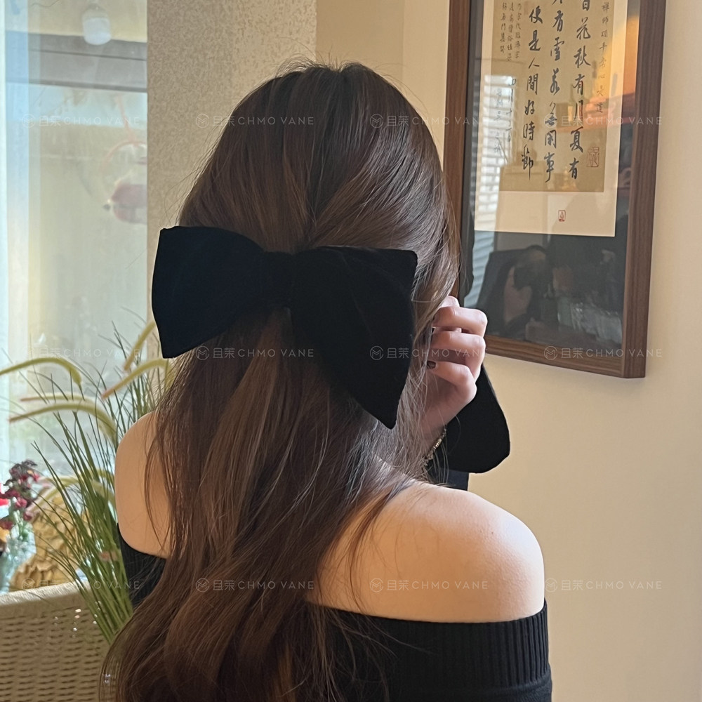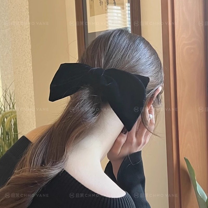 细腻丝绒蝴蝶结年末氛围感黑色后脑勺夹子头饰新 八奶 且茉 青春版