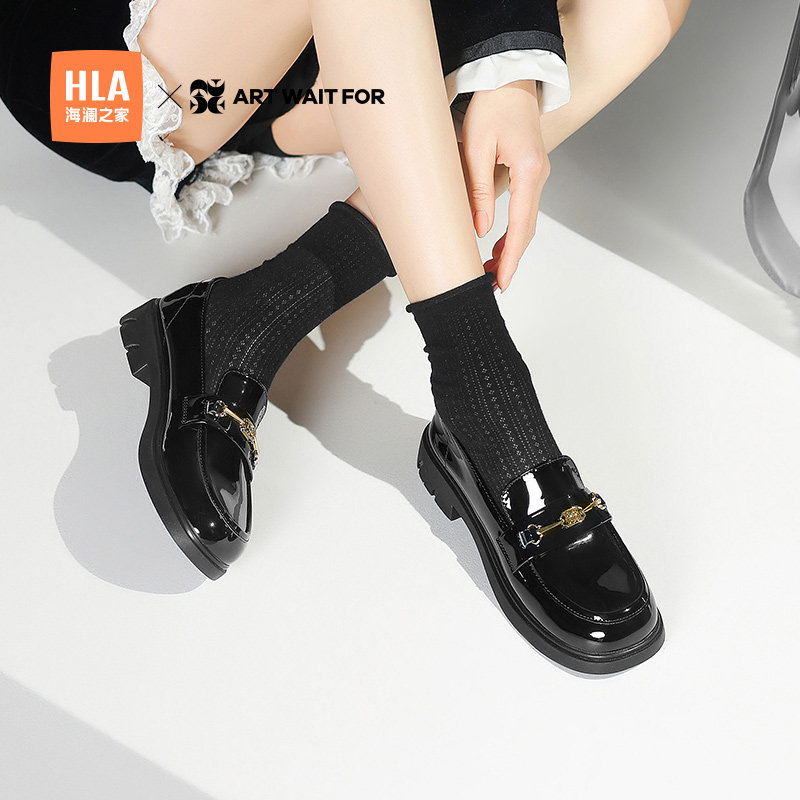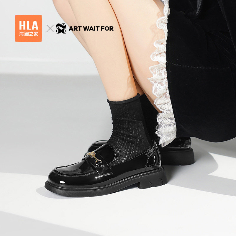 FOR乐福鞋 WAIT 女2025春季 漆皮小皮鞋 女 HLA 平底单鞋 海澜之家ART