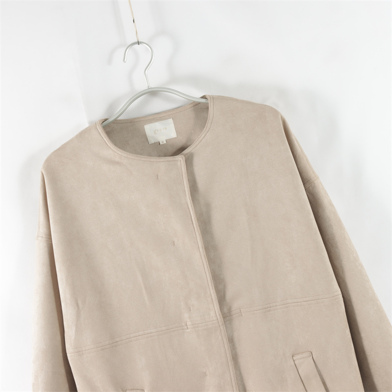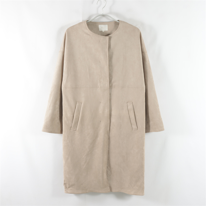 日单新款 中长麂皮绒外套 通勤百搭单排挂扣圆领直筒显瘦女纯色长袖