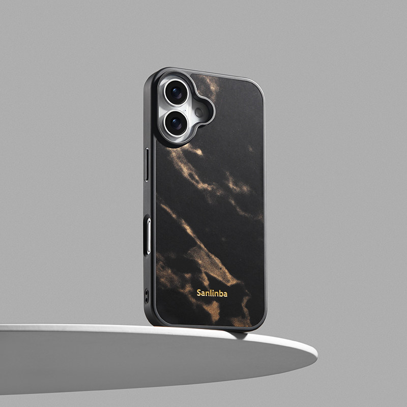 14新款 Sanlinba新中式 16Pro 原创高级感轻奢小众防摔手机套 金银沙皮革磁吸手机壳适用苹果iPhone17ProMax