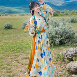 花朝记|踏花归|唐制汉服圆领袍灯笼裤 双色腰带晕染撞色宽松日常