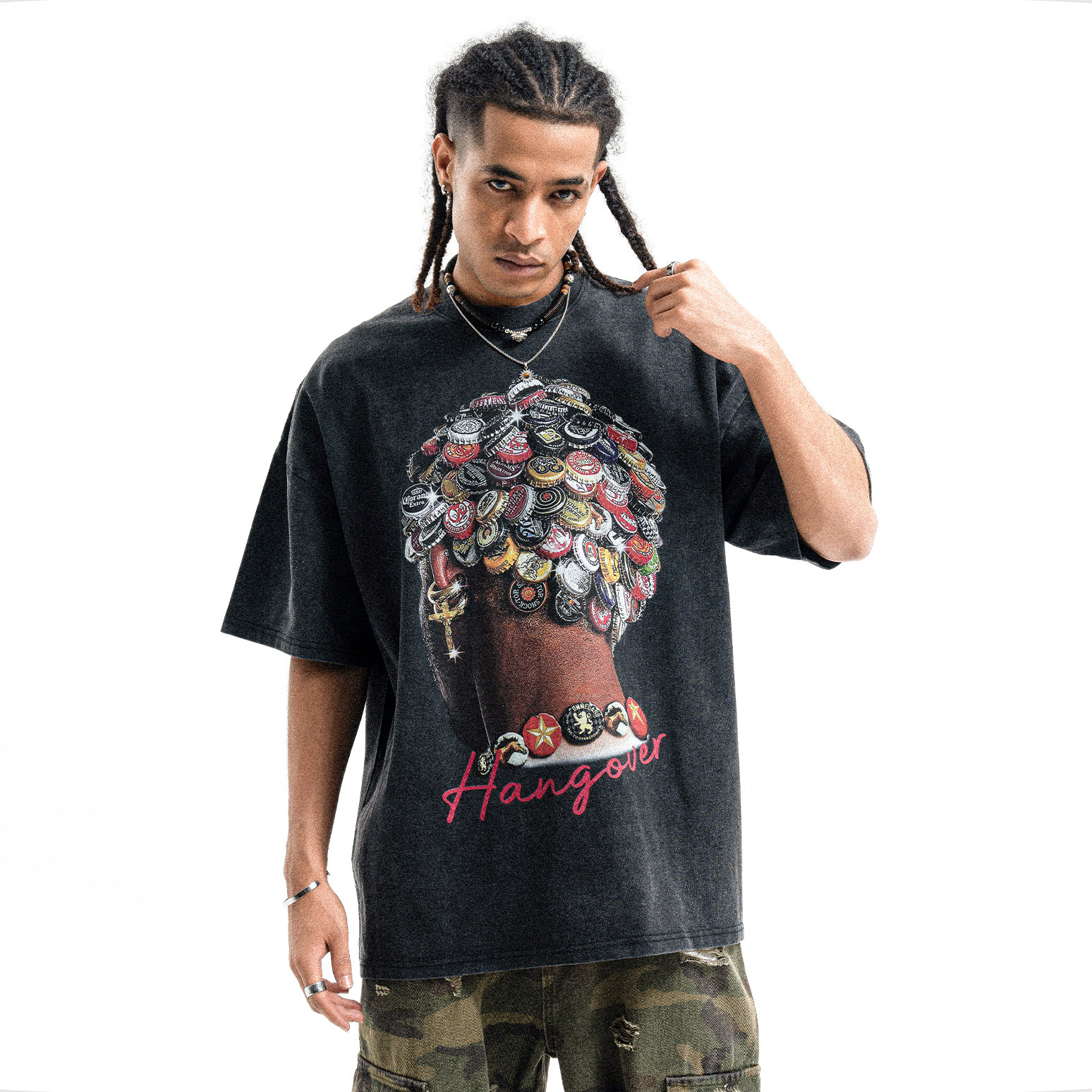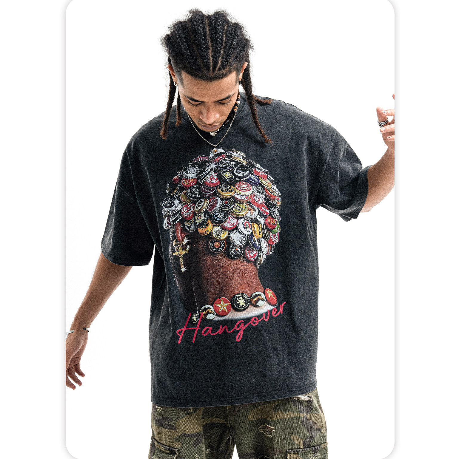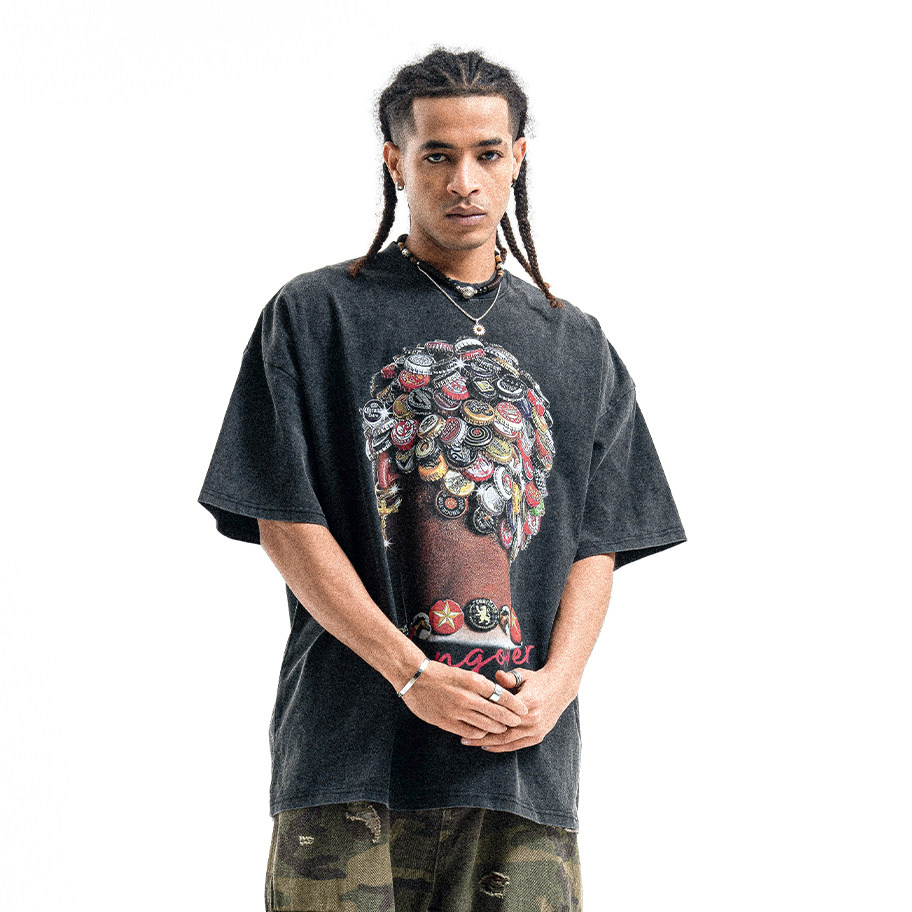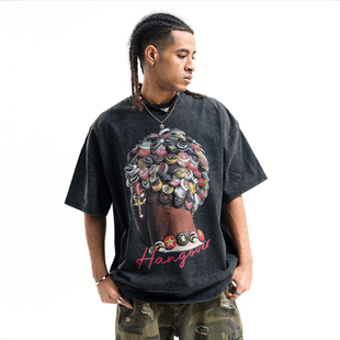 上衣 T恤男宽松300克重磅纯棉小领口夏季 嘻哈朝牌美式 街头嘻哈短袖