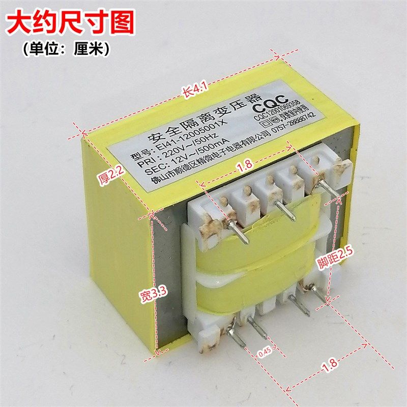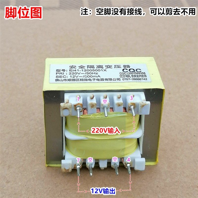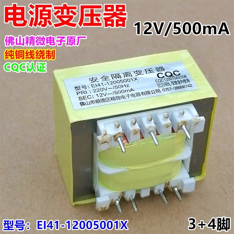 220v转12V 12005001X安全隔离变压器 500mA热水器电源变压器EI41