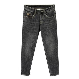 男2026春秋新款 休闲长裤 高端潮流刺绣修身 韩版 子 小脚裤 黑色牛仔裤
