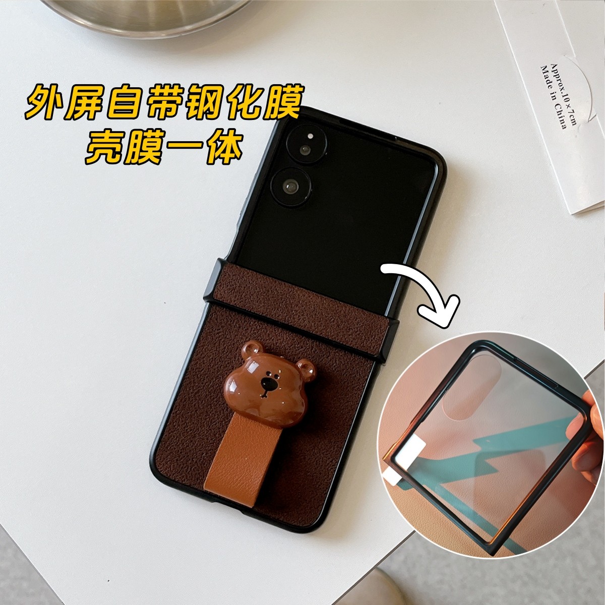 适用小米MixFlip2折叠屏手机壳荣耀MagicVFlip2壳膜一体中轴保护三星zflip7小熊指环摩托罗拉Razr50Ultra挂绳