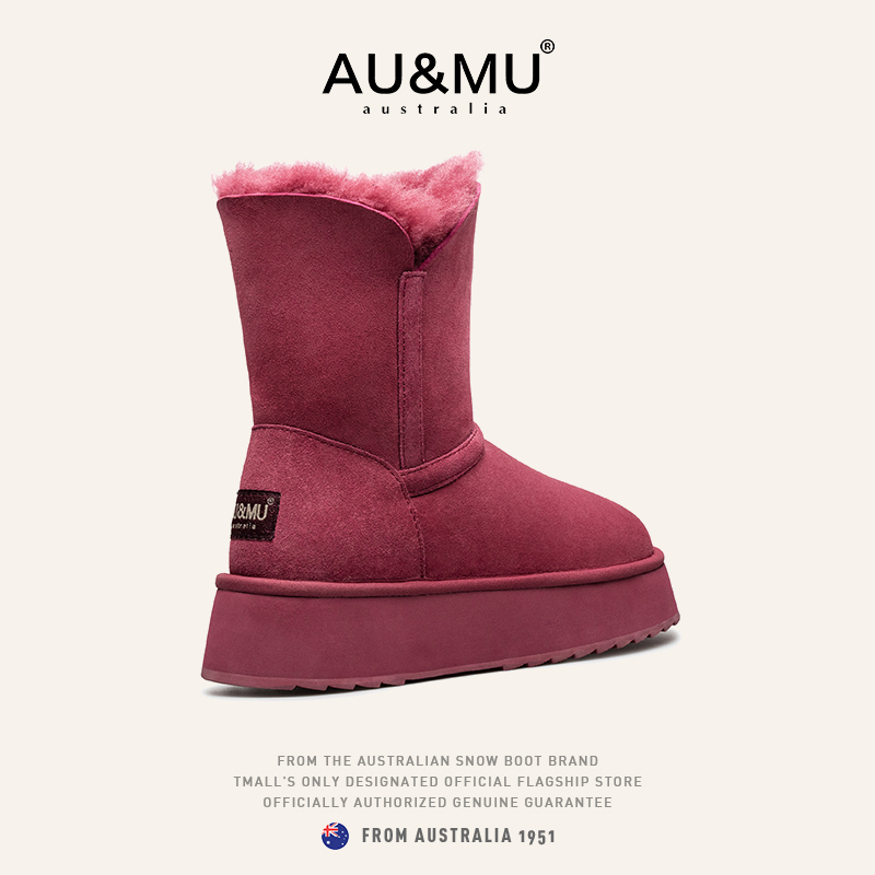 烈儿炸裂双11 厚底保暖时尚 骆驼 抱抱 雪地靴 外翻毛勃肯拖