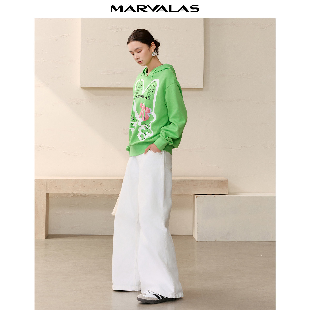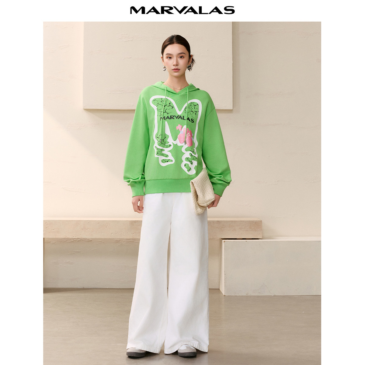 印花上衣百搭减龄宽松通勤套头衫 时尚 新款 曼德诗连帽卫衣2026春季