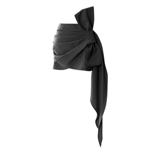 EAM 高腰褶皱设计感半裙 STUDIO蝴蝶结飘带包臀半身短裙女2025新款