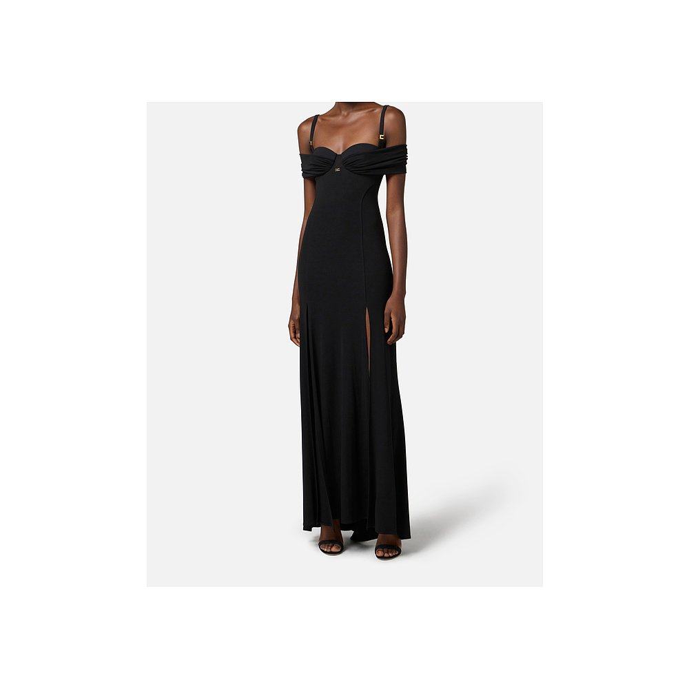 instahot 御姐风拼接收腰开叉长裙 轻熟风蕾丝黑色连衣裙性感时尚