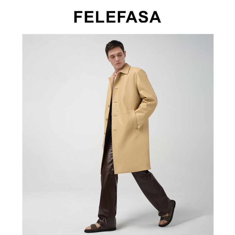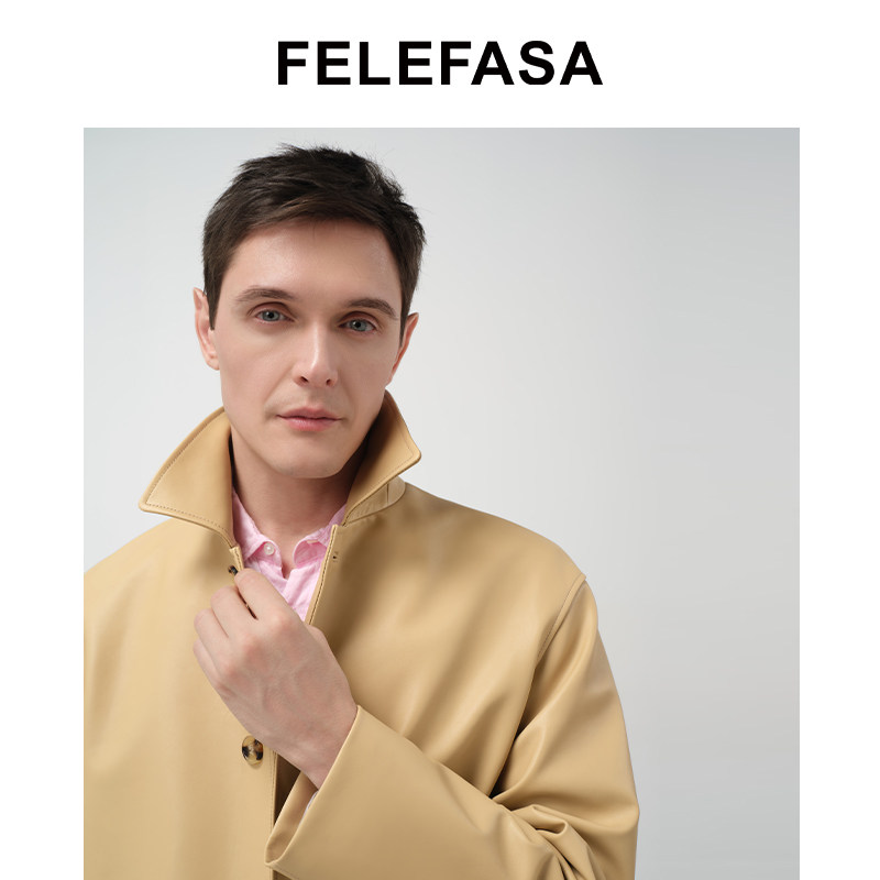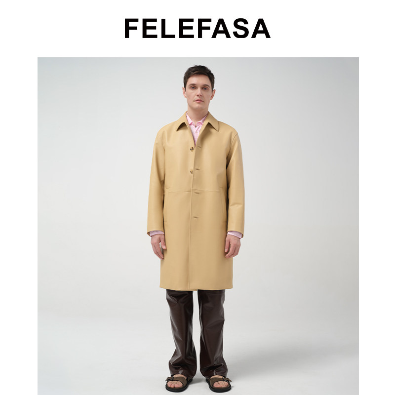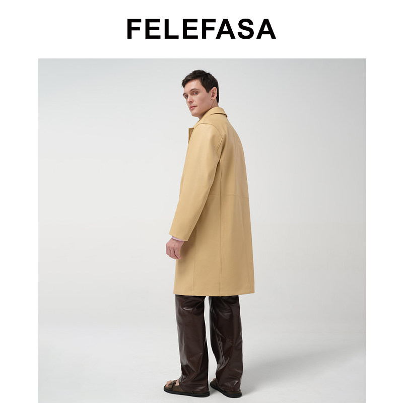 FELEFASA斐梵萨25春男装 Bonaudo牛皮翻领风衣皮衣外套