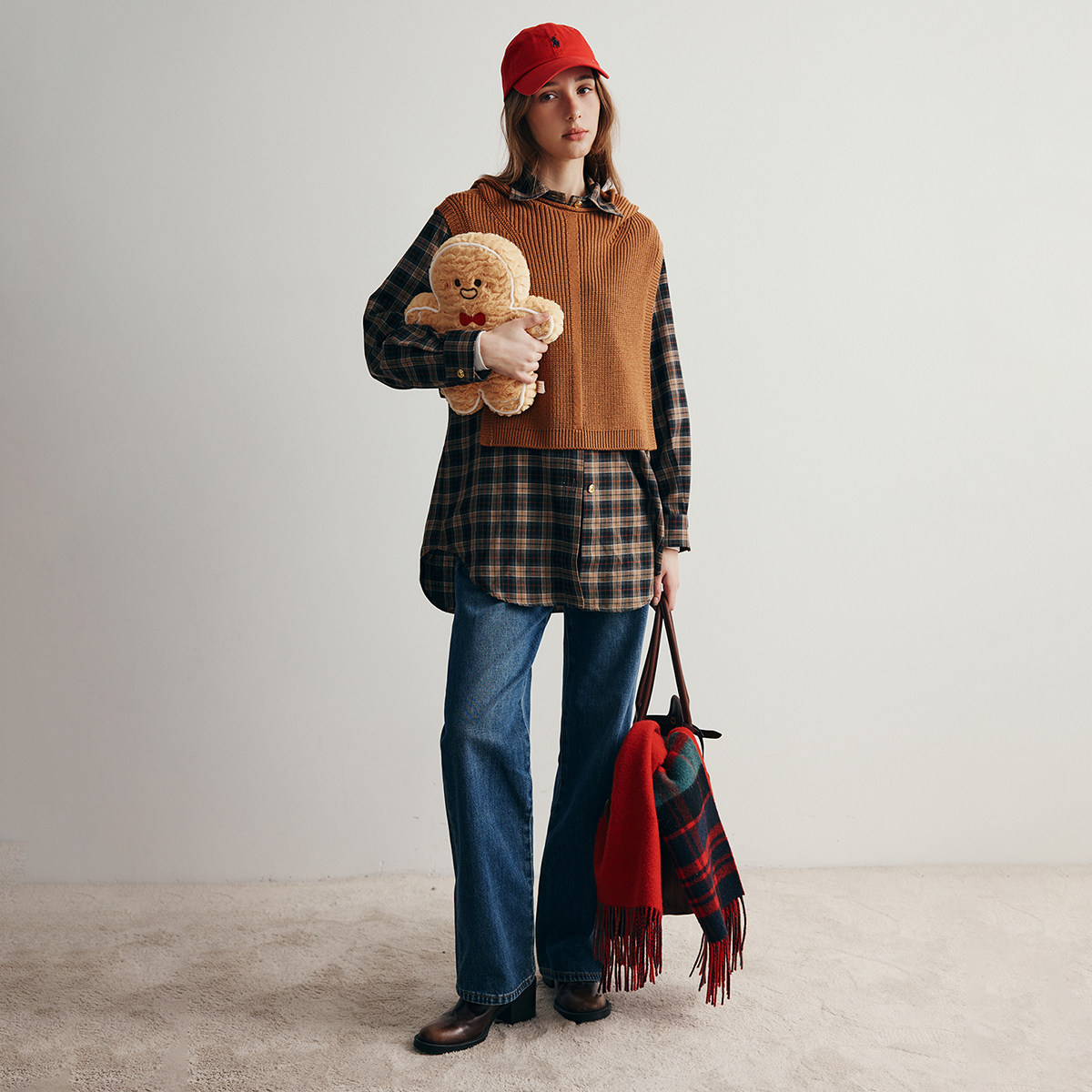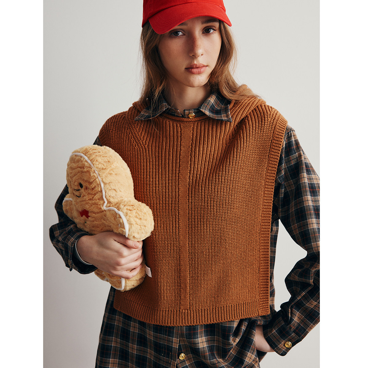 复古套头连帽羊毛保暖针织背心披肩女 凹造型B备 现货 叠穿神器