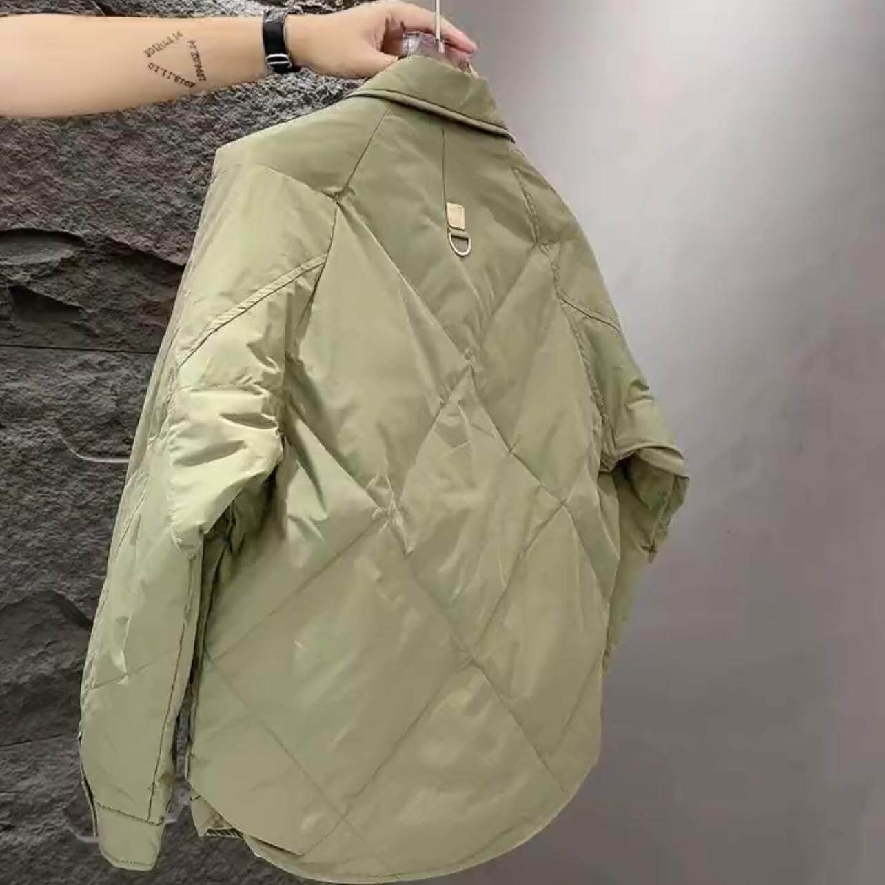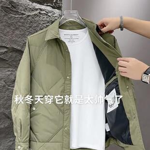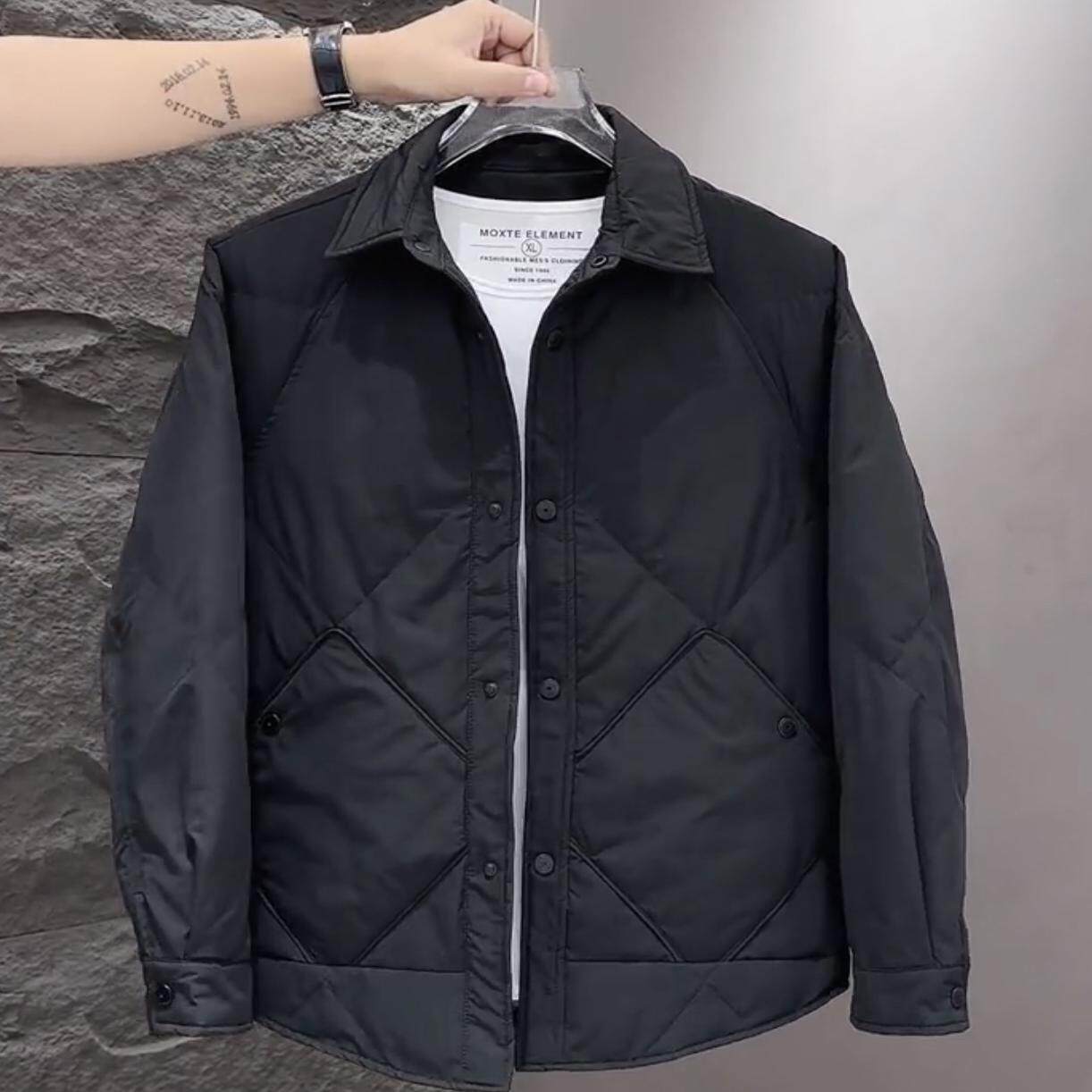 轻薄棉服男2024冬季 高端帅气菱形格翻领夹克保暖休闲外套男 新款
