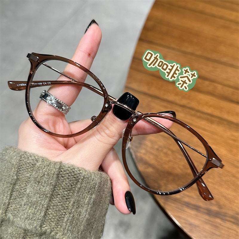 韩系时髦超精致玳瑁色椭圆镜防蓝光散光近视可配高度数眼镜框架女