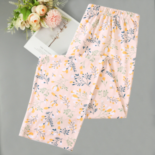 女夏季 宽松全棉高腰春秋长裤 100%纯棉薄款 加肥大码 休闲家居裤 睡裤