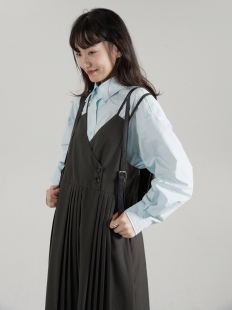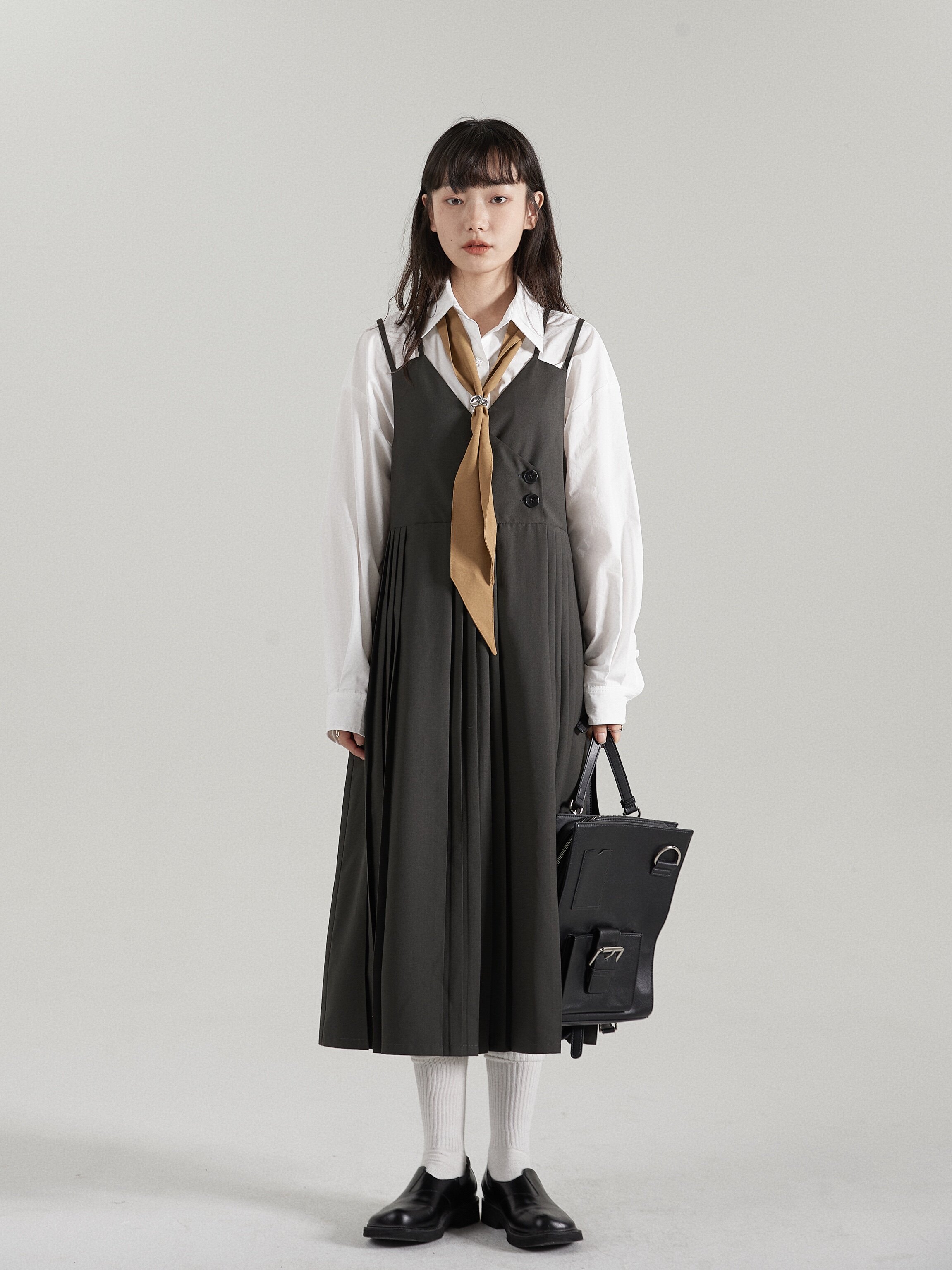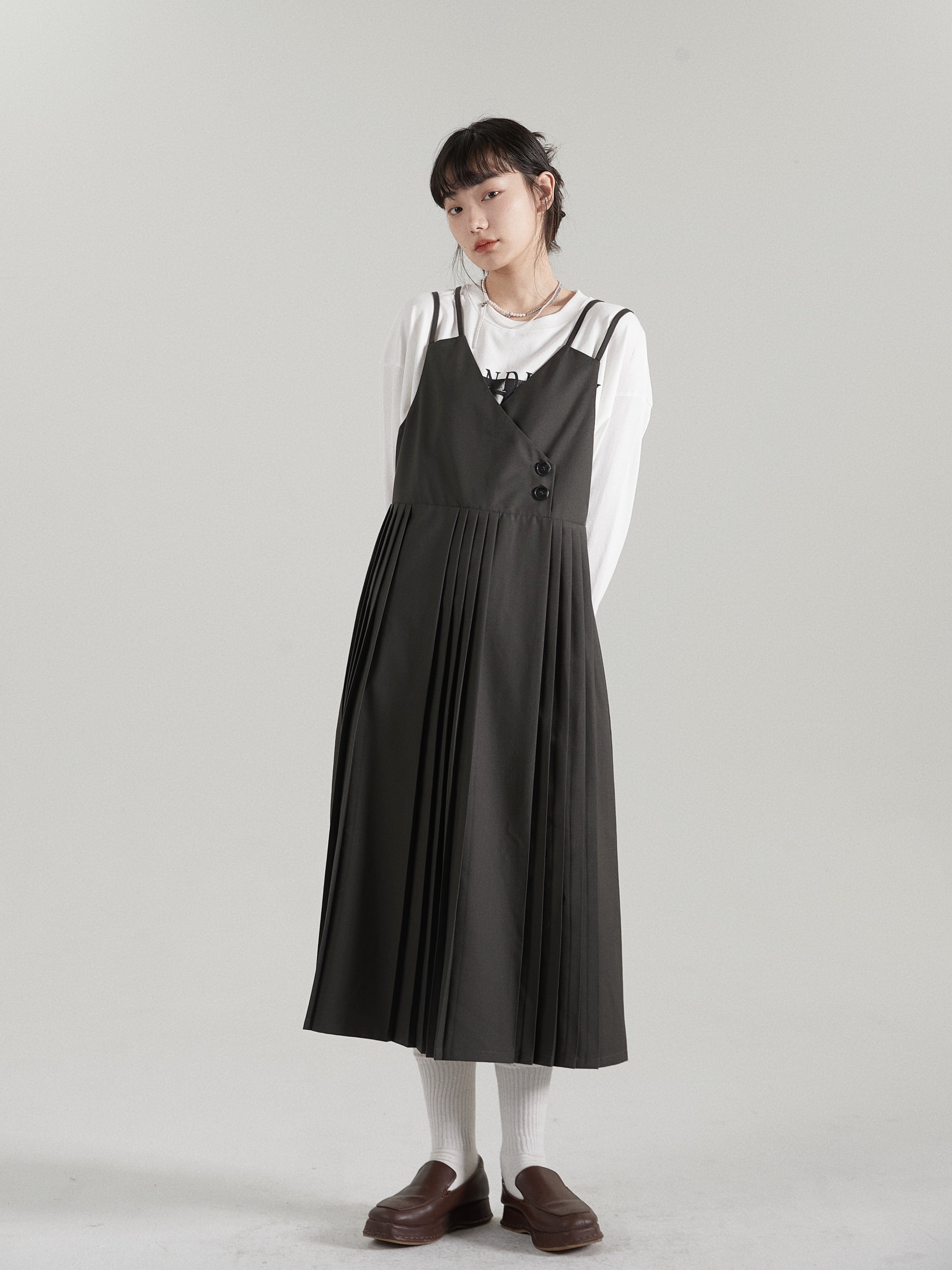 双肩带女 背带裙压褶灰色长裙设计款 KeepBlue 文艺汇演学姐