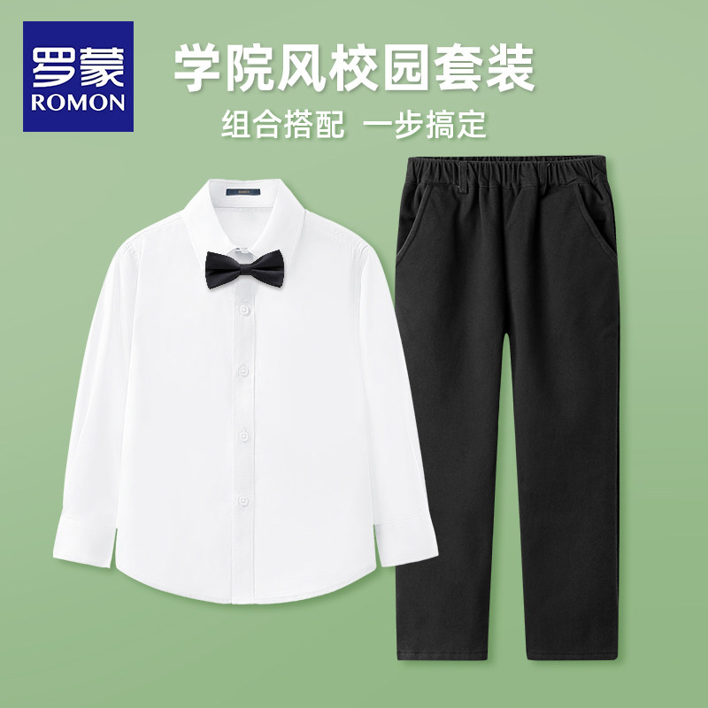 校园班服套装 罗蒙儿童白衬衫 合唱演出服春秋男童六一表演黑色西裤