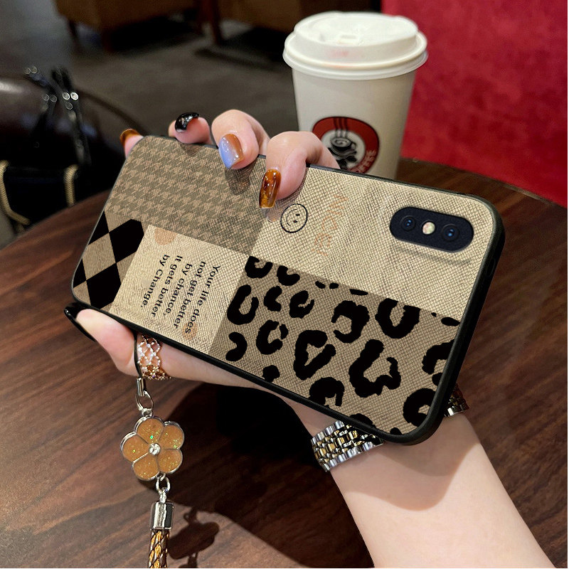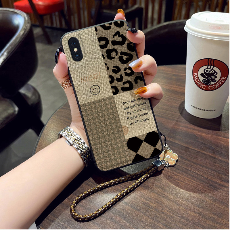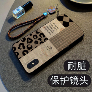 创意拼接外壳 硅胶全包xsmax斜跨挂绳高级感潮牌个性 适用于苹果X手机壳新款 布纹iphonexs保护套防摔XR网红女款
