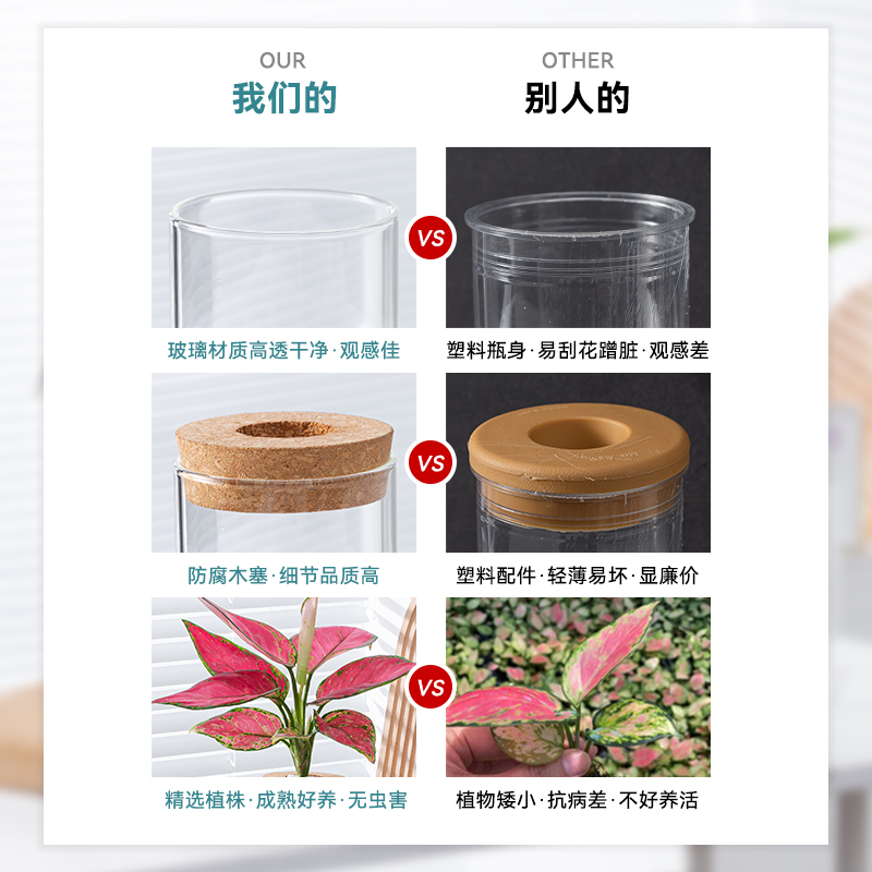 玻璃瓶水培植物春羽绿萝富贵竹办公室内桌面好养绿植花卉小盆栽