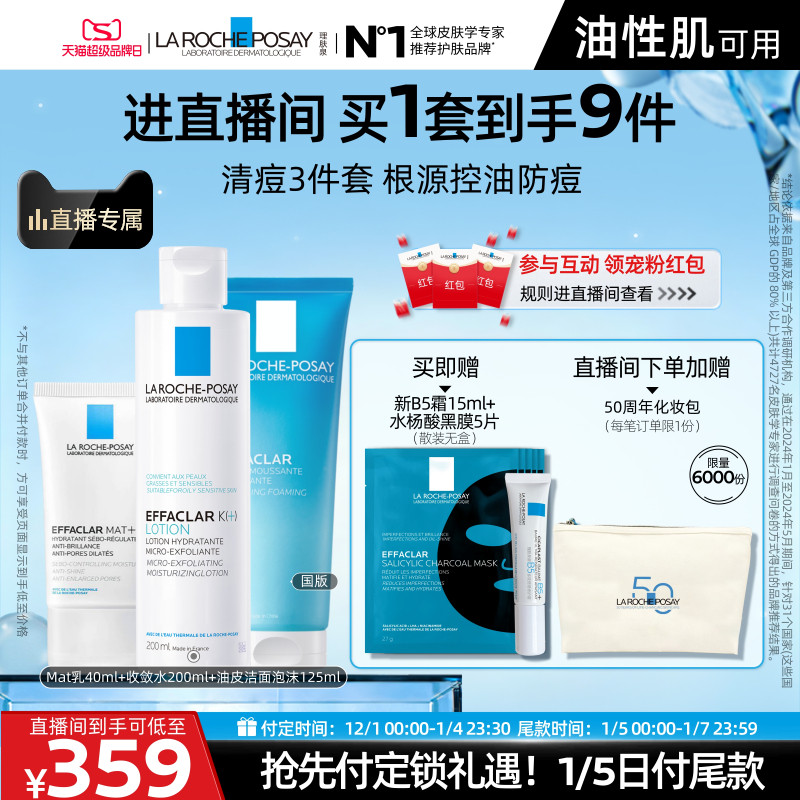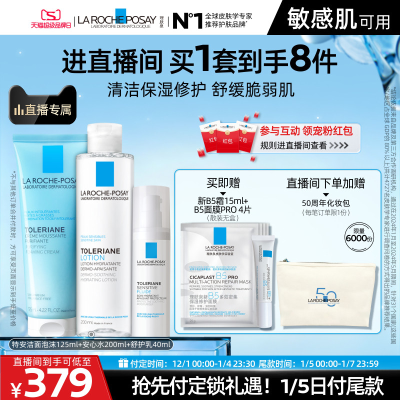 修护水乳套 理肤泉控油祛痘毛孔舒缓保湿 直播间立即预定