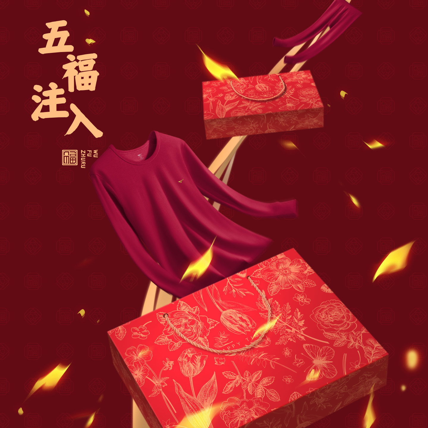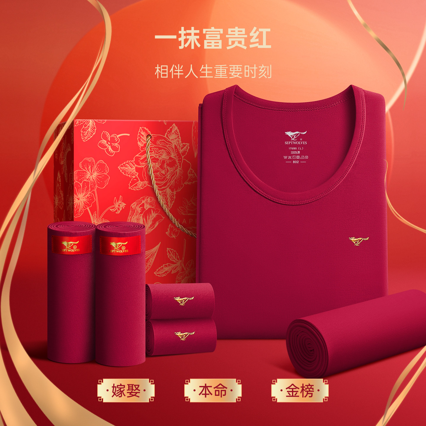 酒红色内裤 纯棉秋衣裤 袜子 保暖内衣套装 七匹狼马年本命年礼物男士