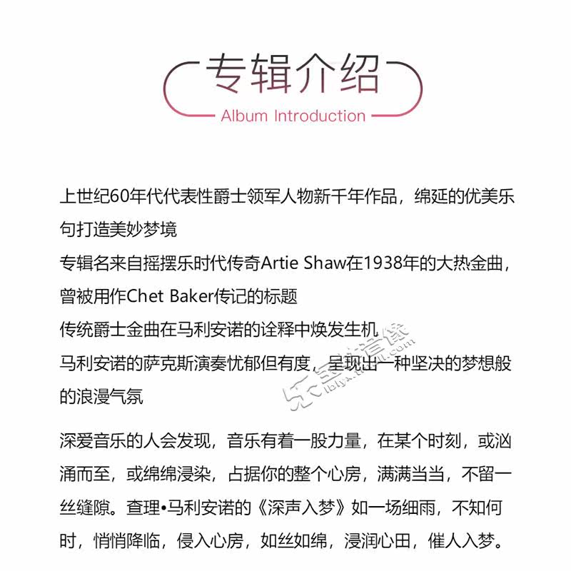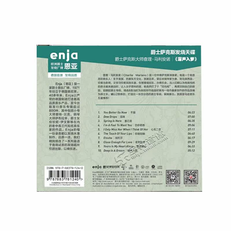 深声入梦 马利安诺 cd碟片 爵士萨克斯大师查理 恩亚系列