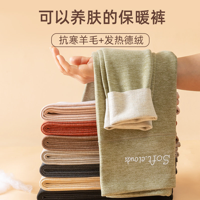 女内穿打底保暖线裤 发热衬裤 含羊毛纯棉毛裤 薄款 冬季 高腰德绒秋裤