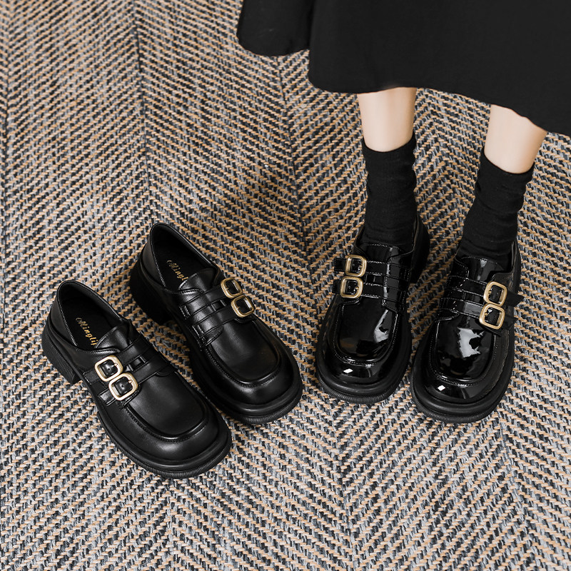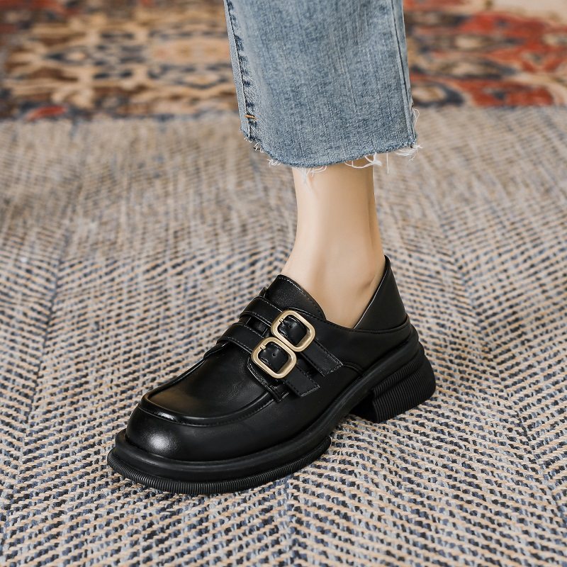 百搭单鞋 2025新款 厚底乐福鞋 大码 41到43 黑色英伦小皮鞋 女鞋 女秋季