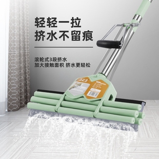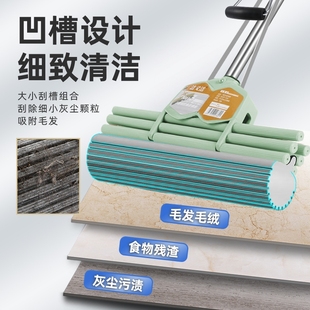 好拖把38CM海绵拖把头吸水地拖布大号家用挤水不锈钢胶棉拖把墩布