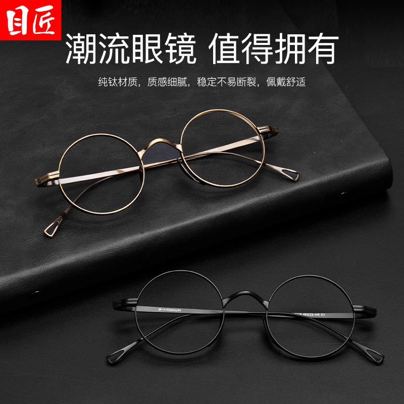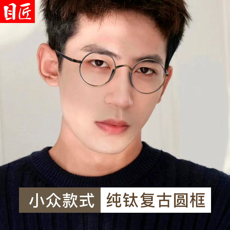 日系纯钛小圆框近视眼镜男款 复古小众超轻宽边可配高度数眼睛框架