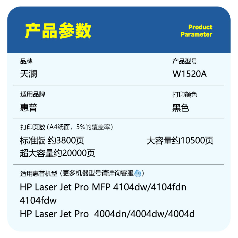 Pro LaserJet MFP4104dw打印机4004d fdn墨盒1520X墨粉 天澜适用惠普W152A dw碳粉盒4104fdw W1520A硒鼓HP