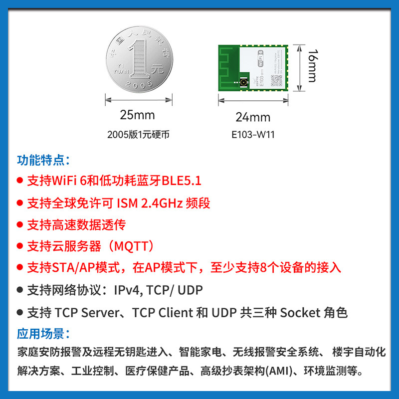 WiFi6低功耗蓝牙BLE5.1高速数据透传串口通信智能家居无线模块OTA