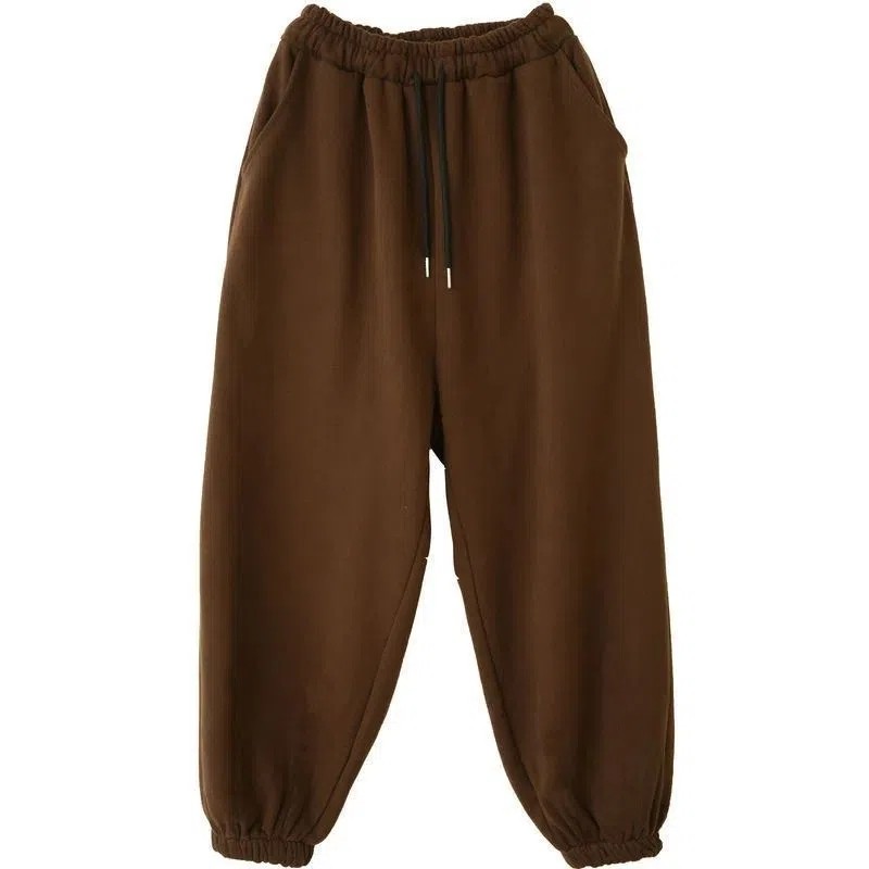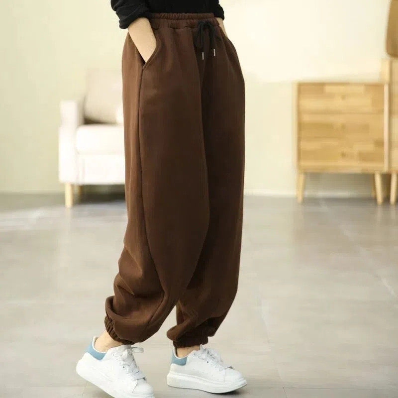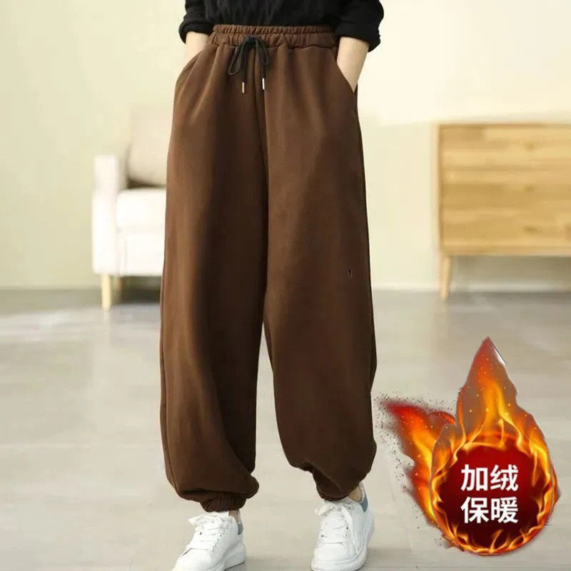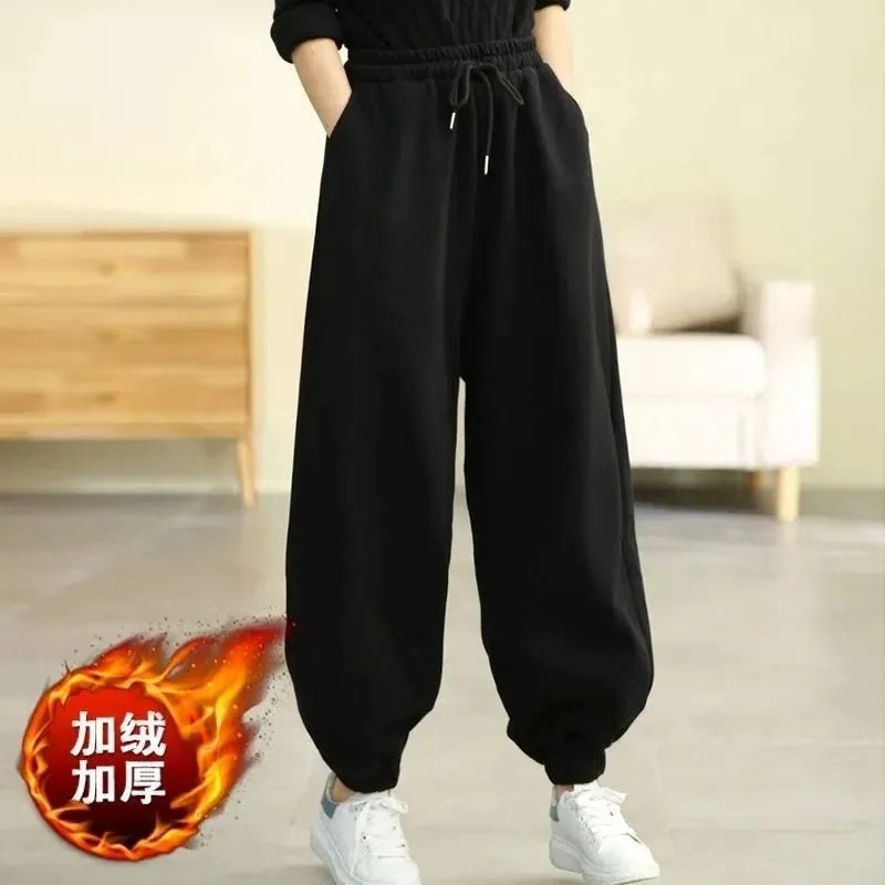 2022年冬 女简约松紧腰纯色百搭宽松休闲裤 加绒加厚大码 束脚灯笼裤