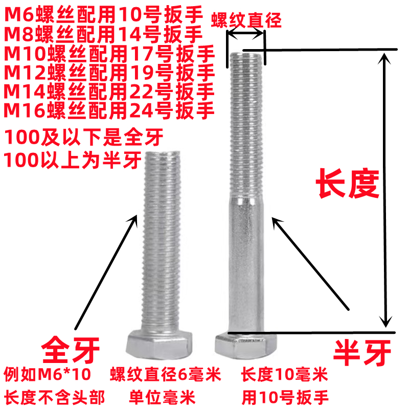 8.8级外六角螺丝螺栓M3M4M5M6M8M10M12M16 30x40x50x60x70x80X100