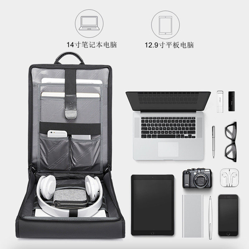 休闲学生书包 小型轻便防水电脑背包14寸时尚 超薄款 简约双肩包男士