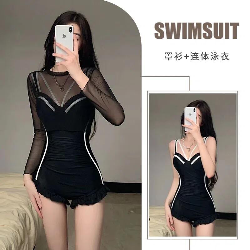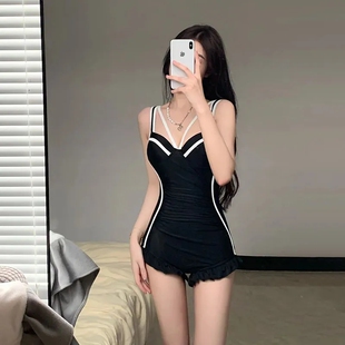 两件套遮肉显瘦保守度假泡温泉泳装 分体泳衣女新款 黑色高级感时尚