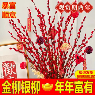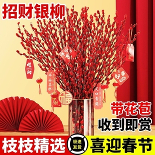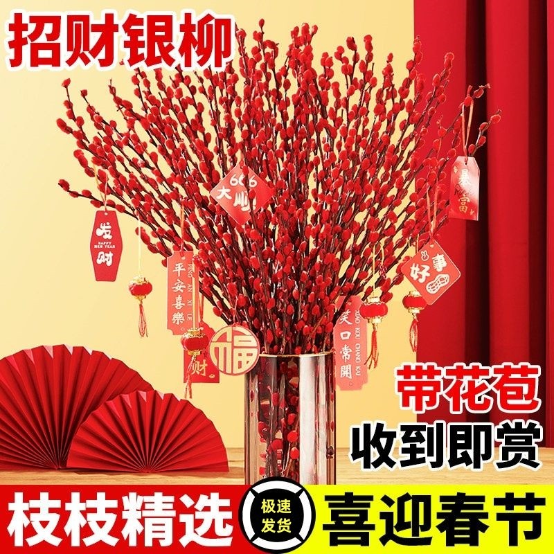 银柳干花真花鲜枝水培植物红色银柳年宵花卉福桶客厅室内装 饰干花