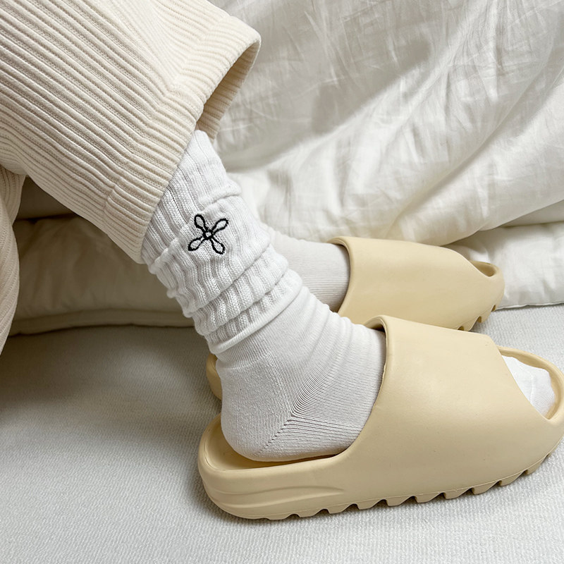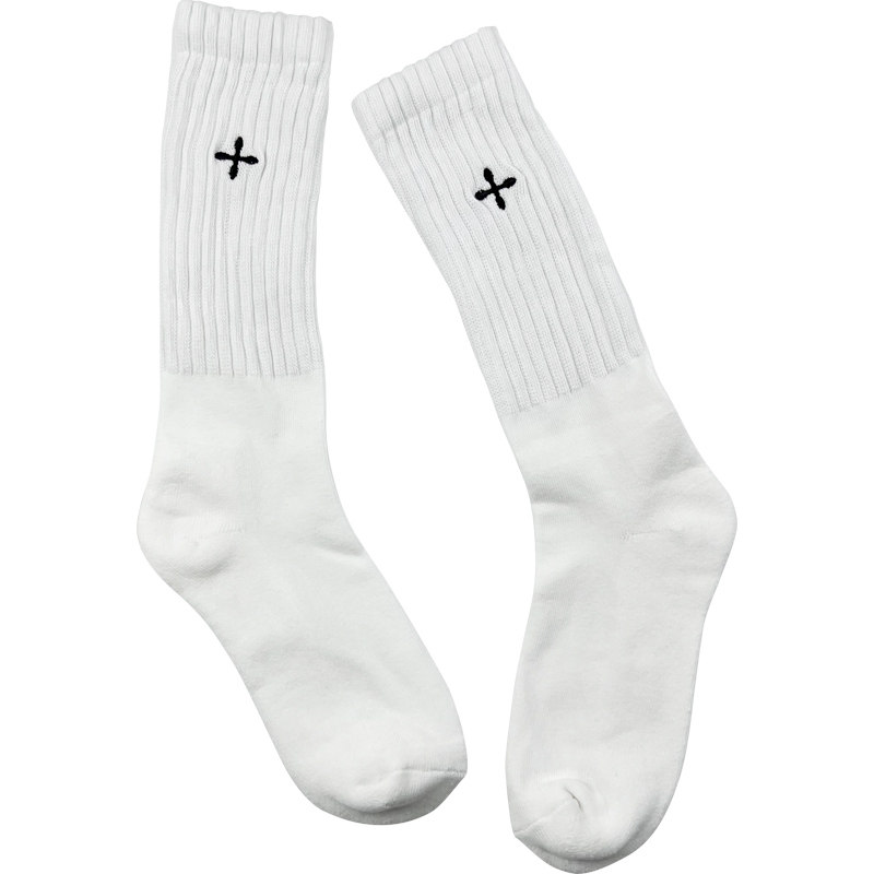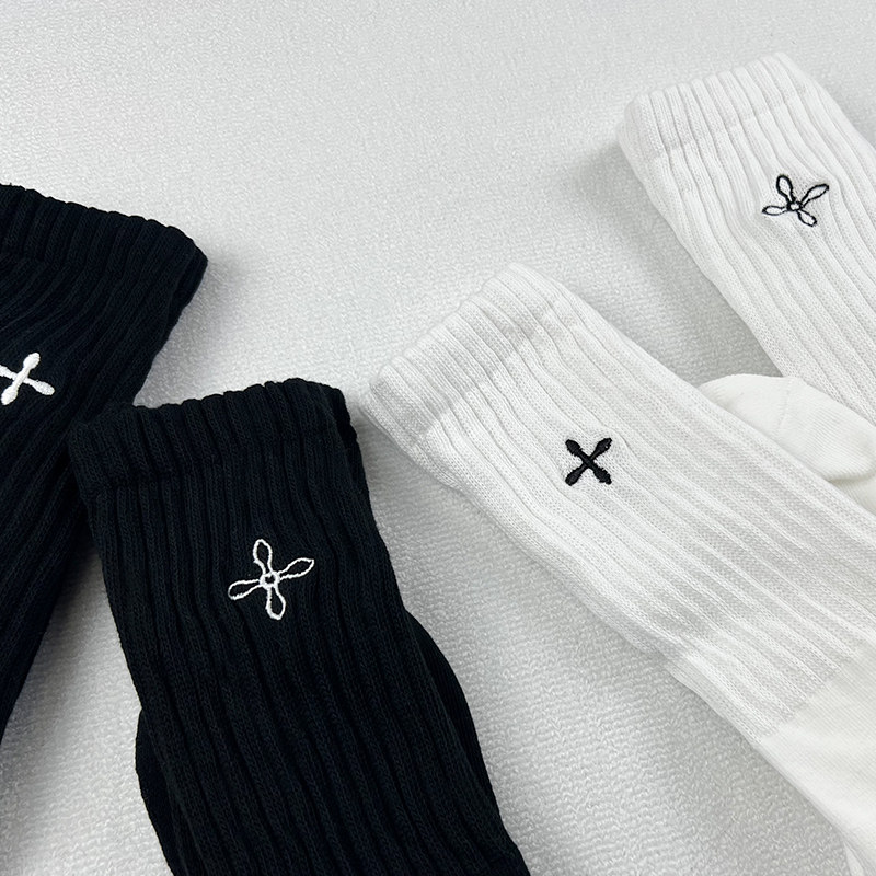 22FW欧洲小众袜子女中筒刺绣十字架加厚毛巾底运动堆堆小腿长袜潮