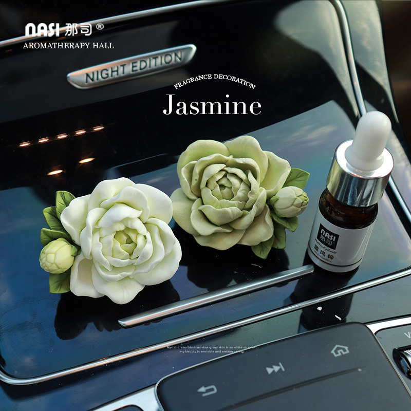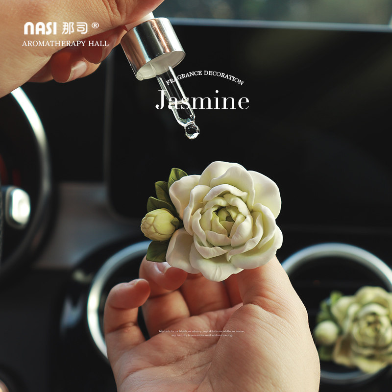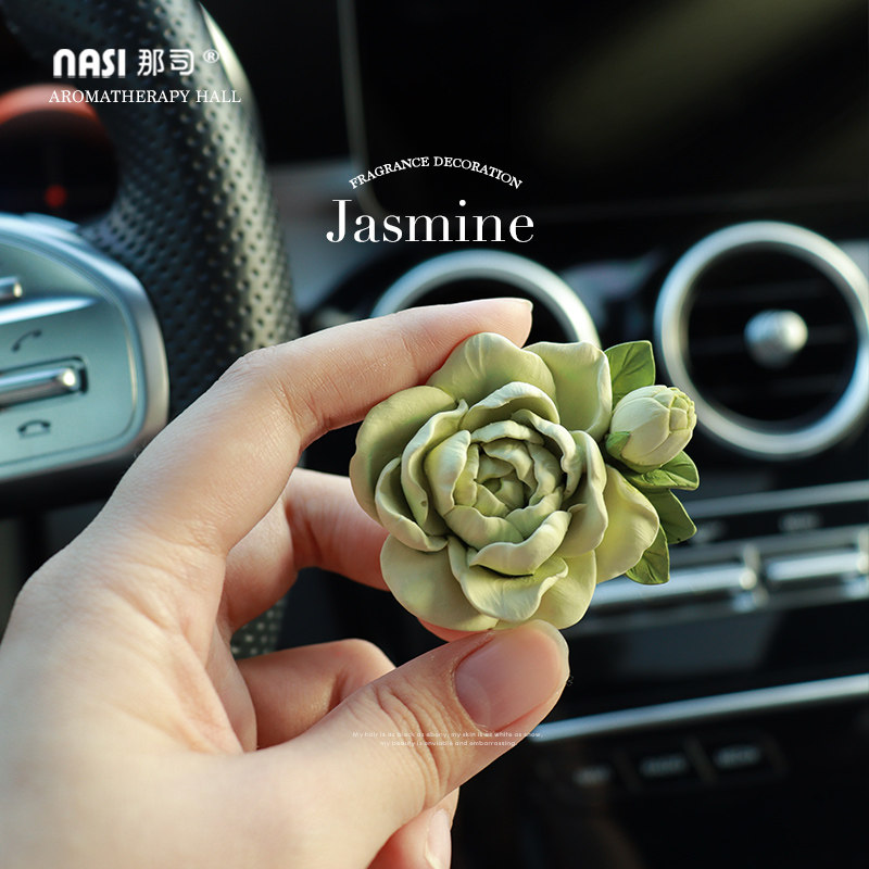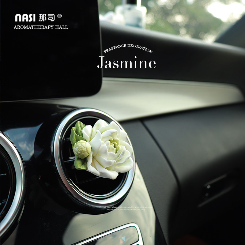 茉莉花车载香水香薰车内出风口装 饰花朵扩香石女神汽车饰品高级感