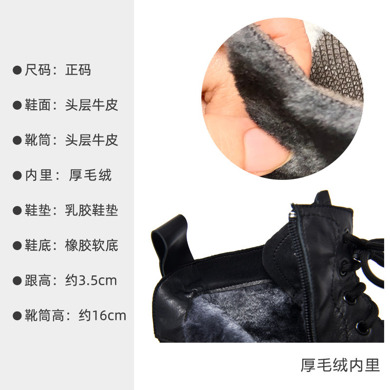 短靴 防滑惠州马丁靴女大码 真皮雪地靴女加绒加厚平底冬季 羊毛棉鞋