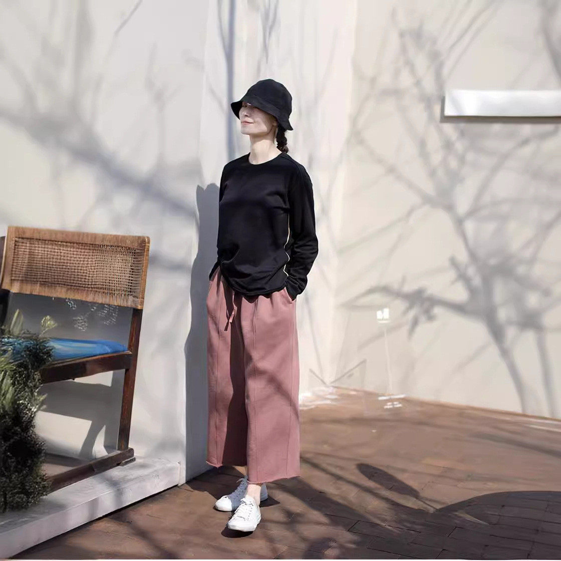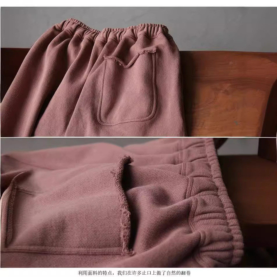 2023秋冬新文艺复古宽松显瘦加厚针织毛圈休闲裤 松紧腰抽绳卫裤