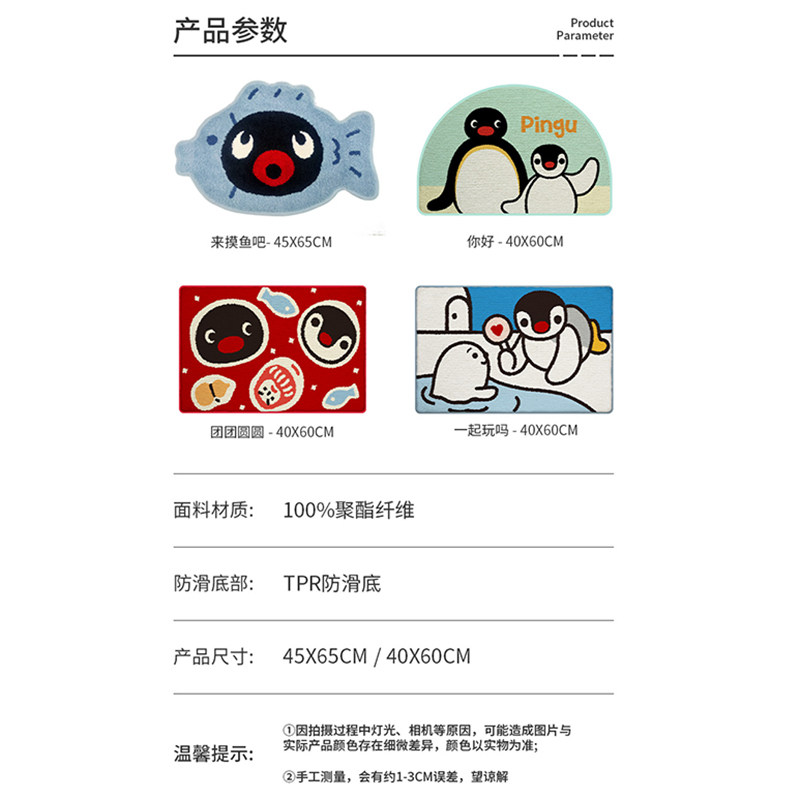 KKV官方Pingu系列植绒地垫卫生间浴室吸水厨房防滑脚垫地毯子