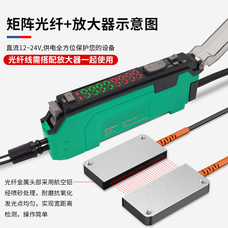 矩形矩阵光纤传感器区域检测对射漫反射计数红外光栅光幕放大器