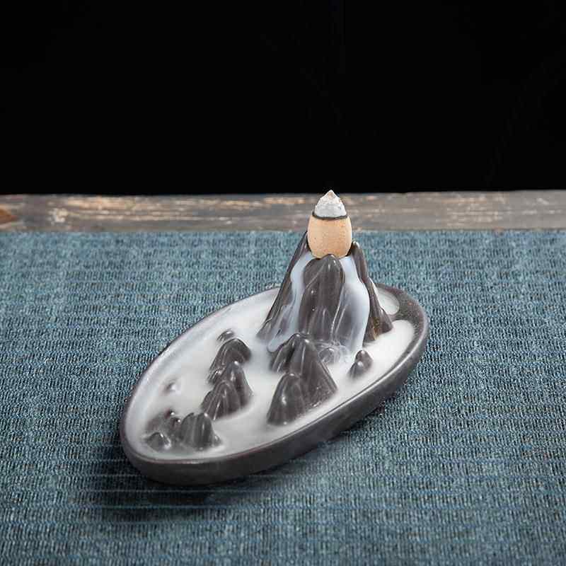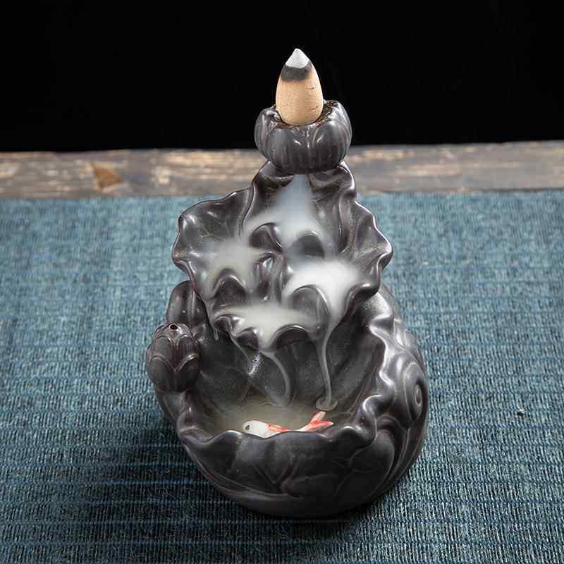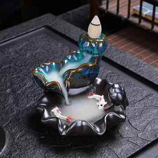 莲花倒流香炉陶瓷香炉居家香薰炉高山流水陶瓷创意摆件工艺品